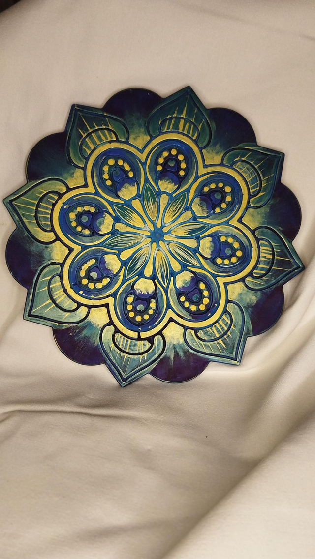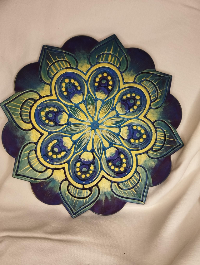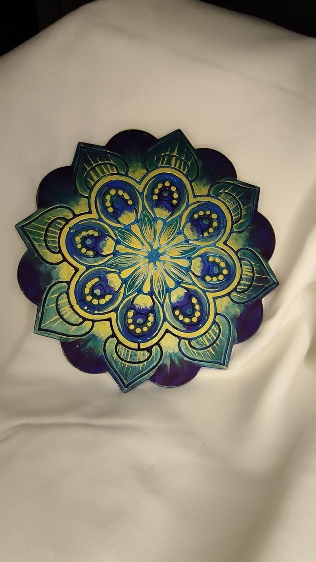 Mandala à poser, coulé et peint à la main. Environ 20cm de diamètre